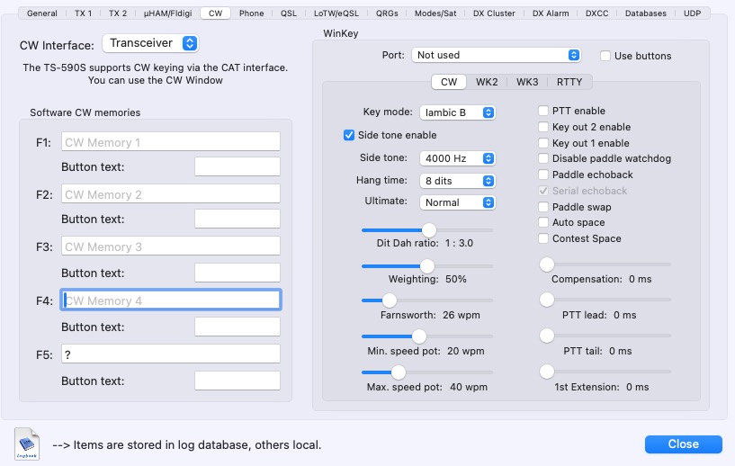 - In the CW tab of that same Settings… menu, select Transceiver from the CW Interface pulldown